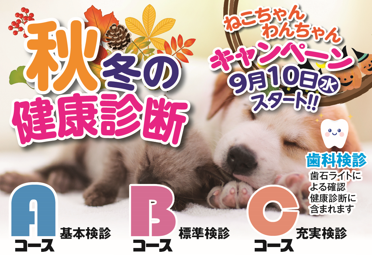9月16日(火)から秋冬の健康診断キャンペーンを開始いたします。今回も普段の検査より充実しお得な内容となっております。